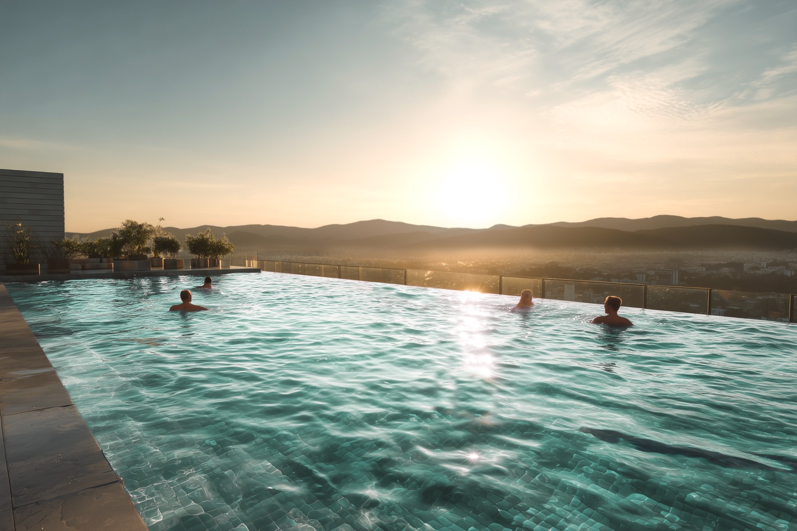 An elegant swimming pool with modern design, ideal for fitness, relaxation, and social gatherings.